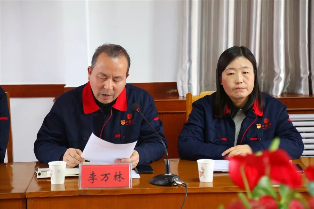 壹定发集团公司纪委副书记李万林宣读《关于席云龙等十九名同志超龄离团的批复》