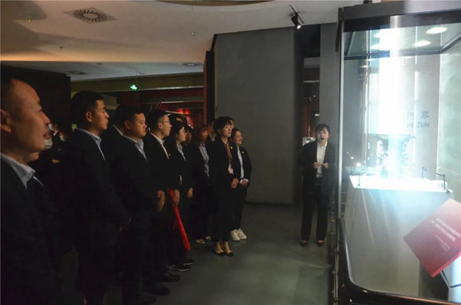 来到宝鸡青铜器博物院,大家跟随讲解员零距离感受青铜器背后那鲜为人知的故事,在讲解员介绍和酒有关的酒器酒具时,大家都是仔细观察、认真记录,特别是镇馆之宝“何尊”让大家非常震撼,作为古代盛酒器,造型古典而华丽,器身上雕刻有饕餮兽的面纹,两侧的兽角向外翘起,显得极为大气,尊内底铭文“宅兹中国”为“中国”一词最早的文字记载,让大家领略到两三千年前的周秦青铜器,无论是精美繁复的工艺还是铭文记述的历史都是世界独有的,进一步深入了解宝鸡厚重的历史文化。
