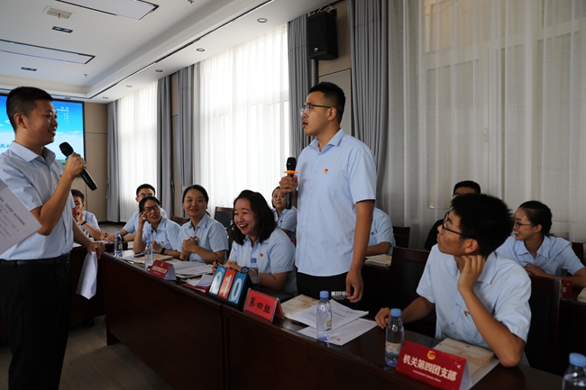 在知识竞赛环节,来自22个团支部的50名团员青年组成五个小组参加了知识竞答,通过志在必得、抢滩登陆、风险提速等三轮竞赛,让团员青年增进友谊、增长知识、增强自信。