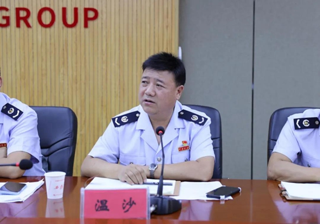 壹定发集团公司党委副书记郭拴新介绍公司情况