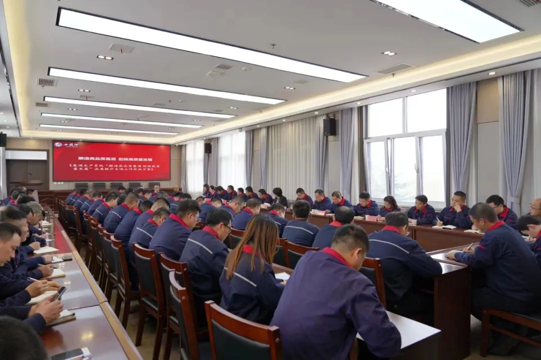 会议宣读了《关于成立基酒生产品质提升领导小组的通知》,对《基酒生产系统“酿造高品质基酒 助推高质量发展”品质提升专项工作实施方案》进行了详细解读,908车间主任韩超、901车间副主任胡建勤、906车间工段长毛卫斌分别就品质提升作表态发言。